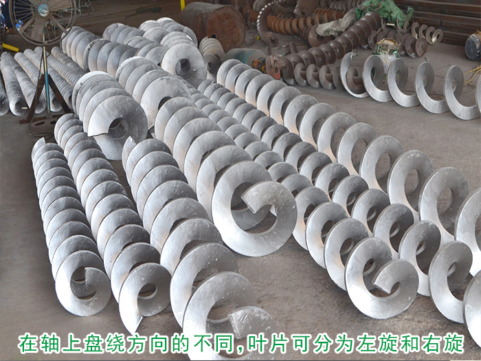 螺旋葉片在軸上盤(pán)繞方向的不同,葉片可分為左旋和右旋。