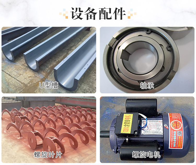 水泥螺旋輸送機(jī)其主要的配件由:螺旋葉片,電機(jī),軸承,螺旋槽等其螺旋葉片和電機(jī)的價格比列是比較高的,螺旋葉片的材質(zhì)有三種碳鋼,錳鋼,不銹鋼三種錳鋼是耐磨的一種所以價格各上會比較貴一點。