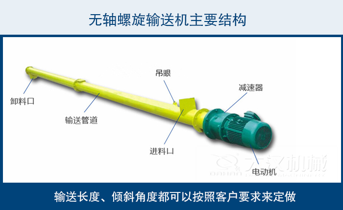 驅(qū)動(dòng)、殼體、襯板、葉片、 支架、蓋板、進(jìn)料口、出料口,輸送長(zhǎng)度、傾斜角度都可以按照客戶(hù)要求來(lái)定做,不同物料不同輸送角度我們?yōu)槟侠磉x型!