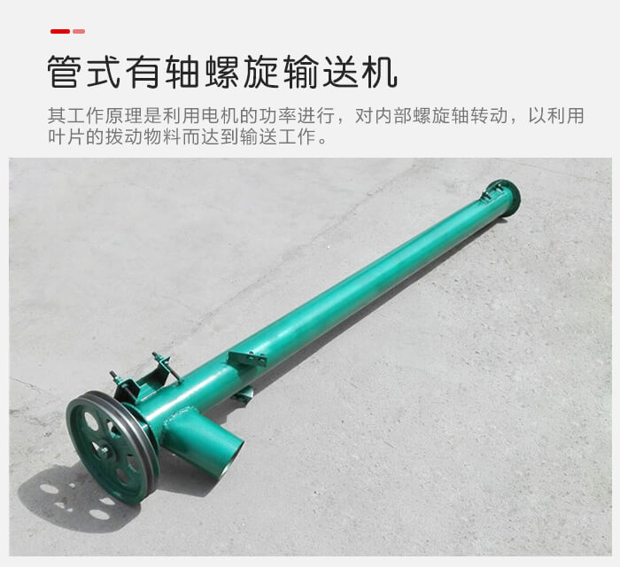 管式有軸螺旋輸送機其,工作原理是利用電機的功率進行,對內部螺旋軸轉動,以利用葉片的撥動物料而達到輸送工作。