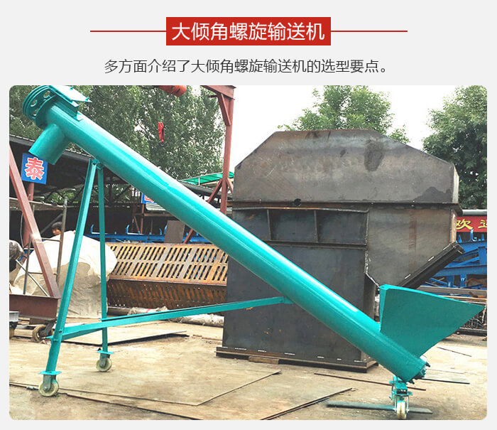 大傾角螺旋輸送機輸送長度和角度大小會對輸送機總的阻力和所需要的功率造成直接影響。如今市場上的大傾角螺旋輸送機類型多種多樣,所以在選型時一定要和廠家溝通好,視情況而選。