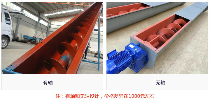 絞龍螺旋輸送機按物料屬性不同所使用的螺旋葉片不同可分有軸和無軸兩種,采用的設計理念也就不同,同種情況下,無軸的要比有軸的生產難度高,因此價格也會存在1000元左右的偏差。