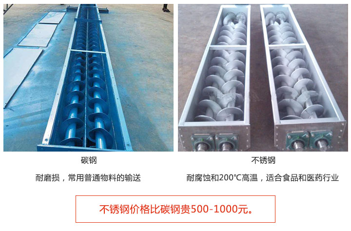 雙螺旋輸送機材質分碳鋼和不銹鋼;