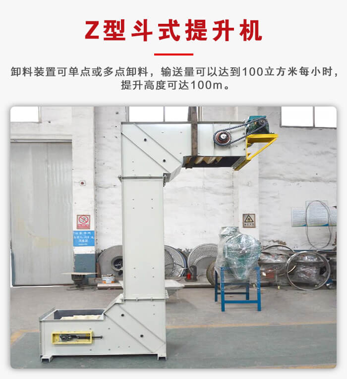 z型斗式提升機(jī)外形類似于“z”型,也叫做轉(zhuǎn)斗式提升機(jī),可以單點(diǎn)或多點(diǎn)加料,通過卸料裝置完成單點(diǎn)或多點(diǎn)卸料,輸送量可以達(dá)到100㎡/h,提升高度可達(dá)100m。